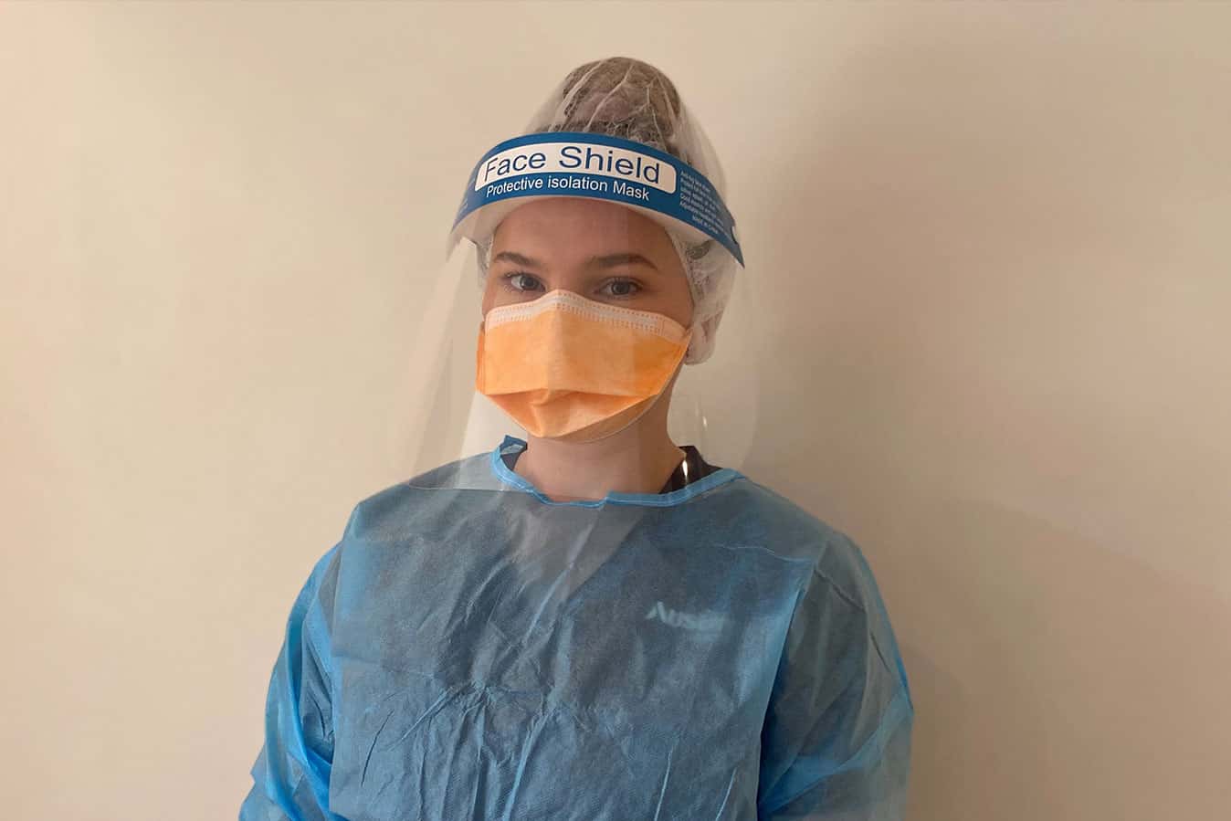 The full gamut of PPE included a gown, gloves, N95 mask, goggles and hair net. Charlotte says wearing PPE for hours on end was tough and unrelenting.