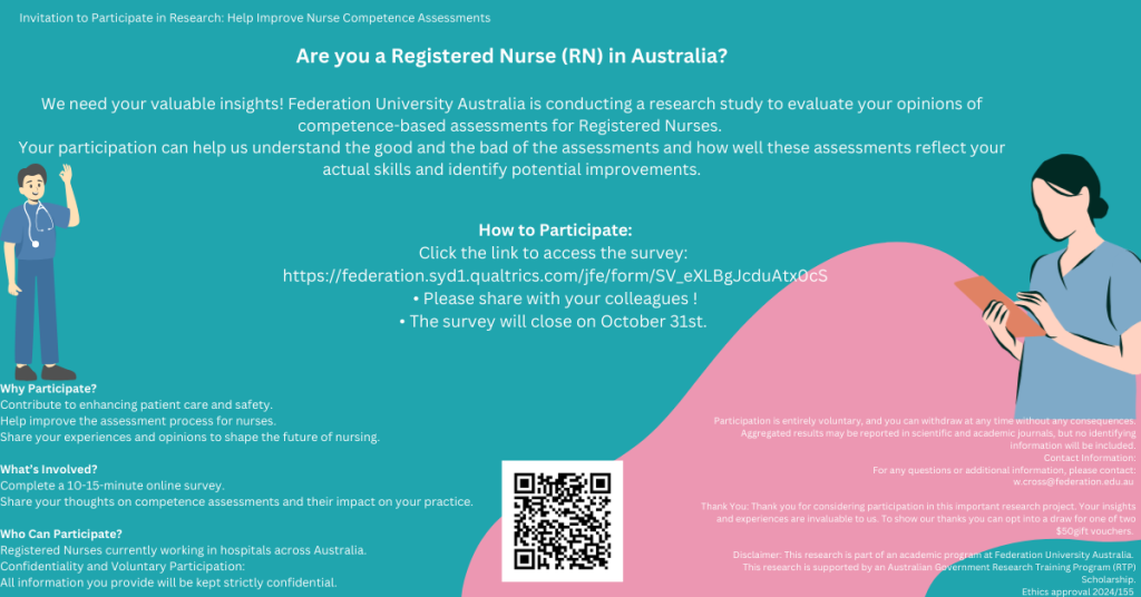 Registered nurses are invited to take part in a research project aiming to understand the effectiveness of competence-based assessments for RNs in Australia.