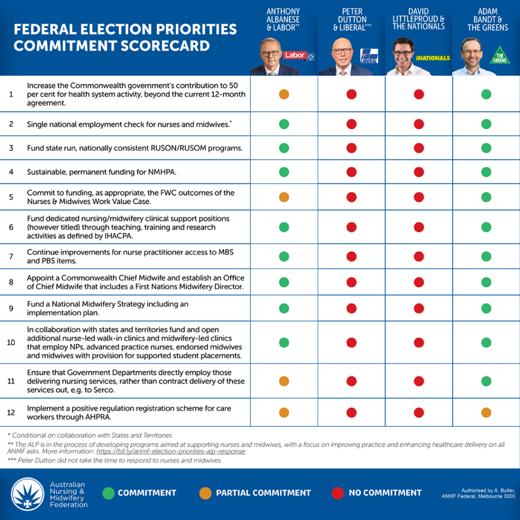 The Australian Nursing and Midwifery Federation (ANMF) has revealed the political parties standing with nurses and midwives this federal election.